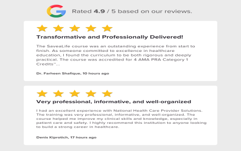 According to my experience with our own team, several staff members recently needed fast recertification for a community event. Choosing an accredited provider with an online renewal option, we completed a virtual course over the weekend. The process was smooth, the interface user-friendly, and the certificate was emailed to us within minutes of passing the final exam. However, for roles in clinical care, the organization still required us to demonstrate CPR on a manikin in-person.